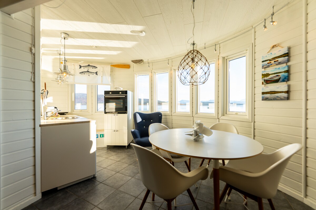 Nydelig sjøhus med utsikt mot Tjeldsundet. Rolige omgivelser med både tureterreng og fiskemuligheter rett utenfor huset. Midnattssol om sommeren, og stor sjanse for å se nordlyset om vinteren. Flott beliggenhet mellom Lofoten/ Vesterålen, Harstad og Harstad/ Narvik/Evenes lufthavn. Sjøhuset har 2.etg, med kjøkken, stue, 2 soverom, bad, gang og entre. Eget vaskerom med tilgang til vaskemaskin. Flott terrasse rett over vannkanten, og fra stuen i 2. etg. er det en egen balkong .