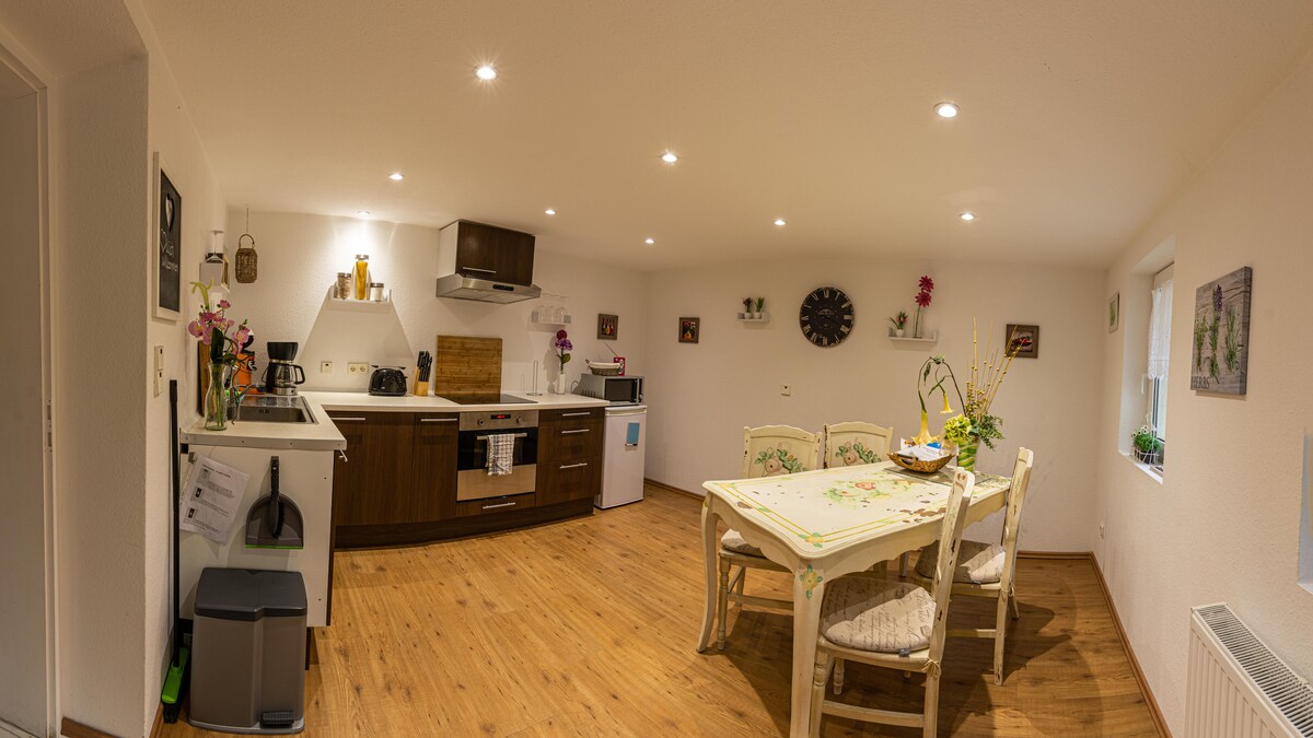 Odihnește-te la periferia Berlinului. Apartamentul de vacanță este situat în mijlocul peisajului rural, cu vedere la pădure. Există internet rapid pentru afaceri, iar cuplurile vor găsi liniște pentru relaxare. Cu mașina, ai nevoie de aproximativ 40 de minute și aproximativ 45 de minute cu S-Bahn pentru a ajunge la Alexanderplatz. Ofertele noastre: - închiriere de biciclete - preț pe zi /bicicletă pentru doar 10 € - Masaje - de exemplu, 1 oră 60 € de la un terapeut instruit (gazda Kathi) în studioul de alături