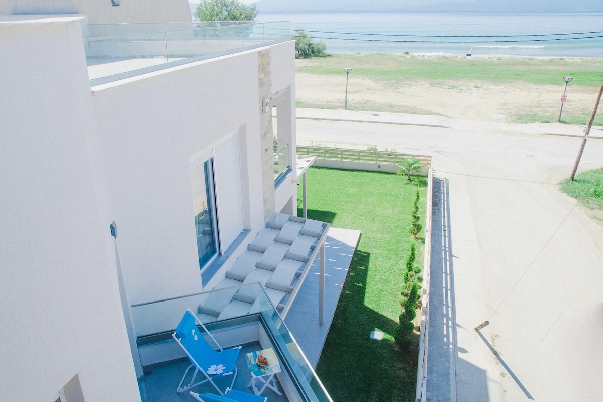Apartament pe plajă în frumosul Asprovalta, disponibil pentru închiriere. Această reședință elegantă oferă un spațiu confortabil și funcțional, cu un living spațios, bucătărie complet utilată, două dormitoare și o baie. Decorul este modern și atent, în timp ce terasa oferă o vedere eclectică la mare. Apartamentul are o grădină comună și parcare gratuită. Poziția este foarte convenabilă, iar plaja din fața apartamentului. Perfect pentru o vacanță relaxantă în frumoasa Asprovalta.