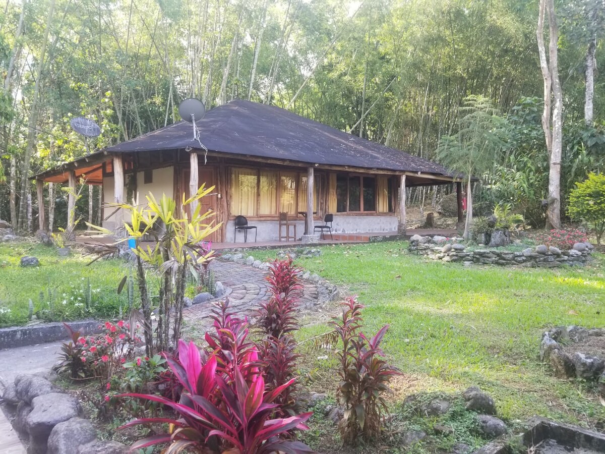 Este o cabană cu piscină și cu tot confortul în Amazon din Ecuador. Proprietatea are 1 hectar cu peisaje unice ale vulcanului Sangay și ale râului Upano, cu o mulțime de natură în jur, păsări, animale mici și inofensive într-o stare naturală. Locul are piscină privată, zonă de grătar, trasee până la râul Upano, hamace, puncte de vedere. Să ai o experiență de neuitat 🙌