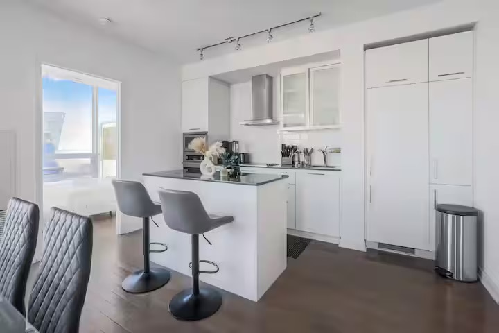 Stai în inima centrului orașului Toronto, în acest apartament modern cu un dormitor, la doar câțiva pași de Turnul CN, Rogers Centre și malul apei. Unitatea are un pat matrimonial confortabil în dormitor și o canapea extensibilă în living, perfectă pentru cupluri sau grupuri mici. Bucură-te de priveliștea panoramică prin ferestrele din podea până în tavan sau relaxează-te pe balconul privat. Apartamentul include o bucătărie completă, Smart TV, Wi-Fi de mare viteză și mașină de spălat și uscător în apartament. Oaspeții au, de asemenea, acces la o sală de fitness și la o piscină în aer liber.