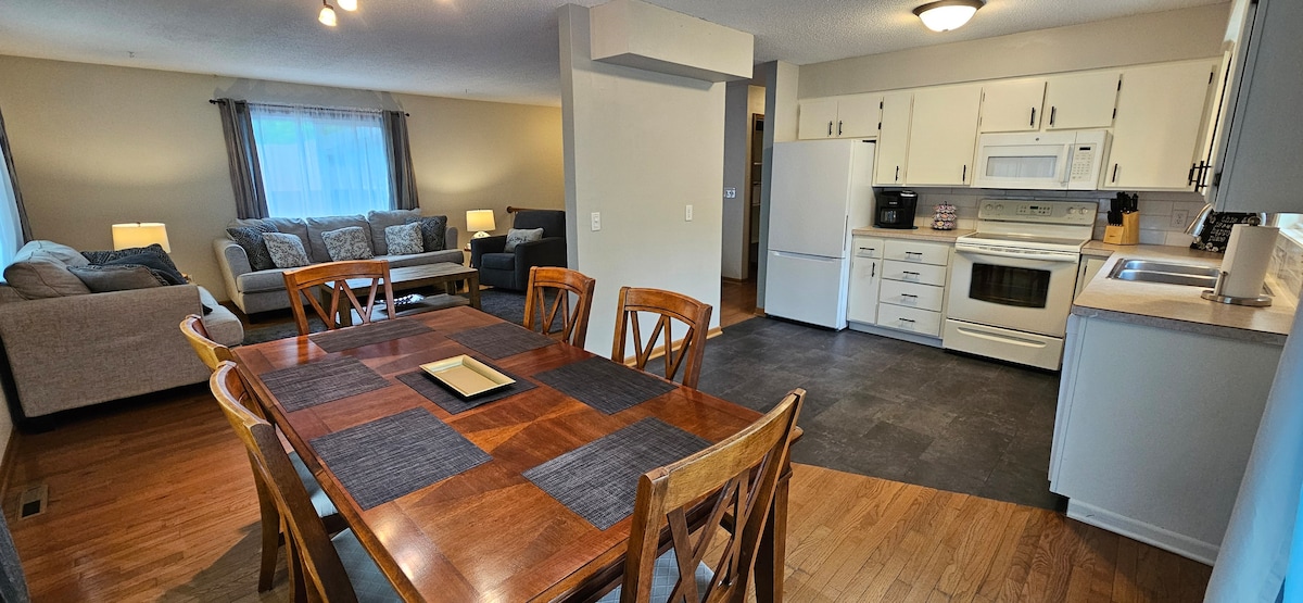 Poți dormi bine după o zi lungă de snowmobil, vânătoare, pescuit sau vedere în acest loc liniștit și situat central. Stai în jurul focului de tabără seara și relaxează-te. Acesta are un pat matrimonial, un pat dublu și o canapea confortabilă pentru dormit. În chicinetă există un frigider complet, un aragaz cu două ochiuri, cuptor cu microunde, ibric de cafea, blender și un prăjitor de pâine/pizza/cuptor cu convecție. Reține că va trebui să împarți partea cu sala de petreceri cu unii educatori la domiciliu miercuri dimineața.