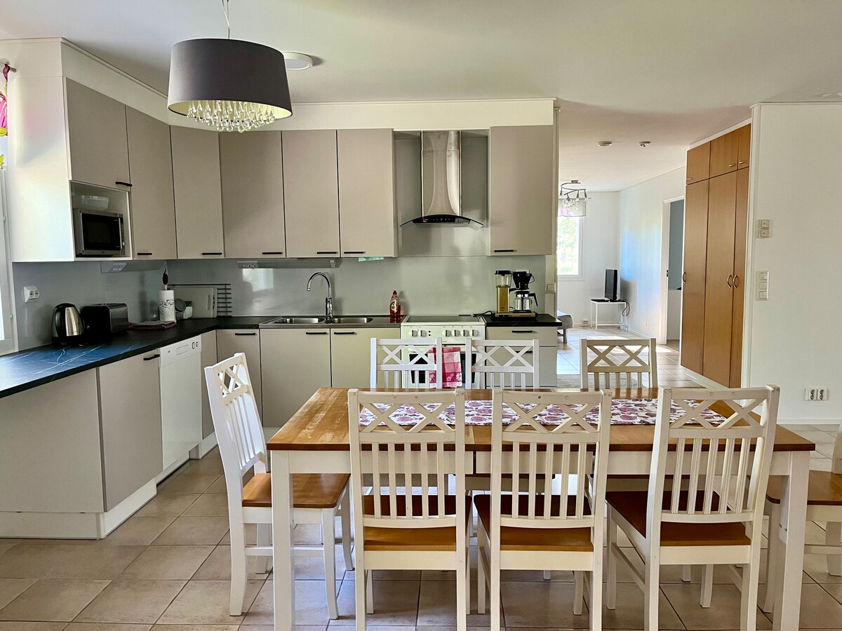Această locuință specială cu vedere la lac și grădină este aproape de serviciile centrului orașului Sulkava. Poți merge să înoți și să faci canotaj de pe propria plajă. Locuința are atât atmosfera unei case vechi, cât și o bucătărie și baie noi. Pe veranda fermecătoare de sticlă, poți vedea lacul pentru ceaiul de dimineață sau de seară în timp ce te bucuri. Sauna de pe malul lacului este disponibilă contra unei taxe separate. Taxă de călătorie pentru mașini hibride și biciclete electrice contra unei taxe separate. Sugestii pentru unele dintre cele mai bune locuri din natură din zonă de la gazdă!