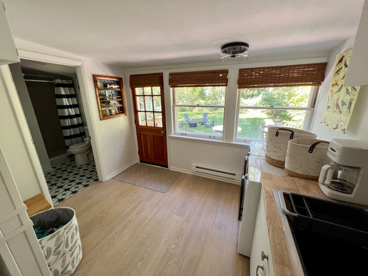 Trezește-te la răsăritul soarelui peste o curte liniștită și bucură-te de amestecul preferat pe balconul privat. Serile sunt perfecte lângă groapa de foc sub un cer înstelat. Această locuință renovată are aragaz/cuptor cu gaz, cuptor cu microunde, filtru de cafea, frigider/congelator de dimensiuni normale, mașină de spălat și uscător în unitate, TV inteligent și Wi-Fi - ideal pentru cupluri, familii mici sau profesioniști care călătoresc. La doar 1,6 km de I-94 și la 20 de minute de Milwaukee, îmbinând confortul liniștit cu comoditatea orașului.