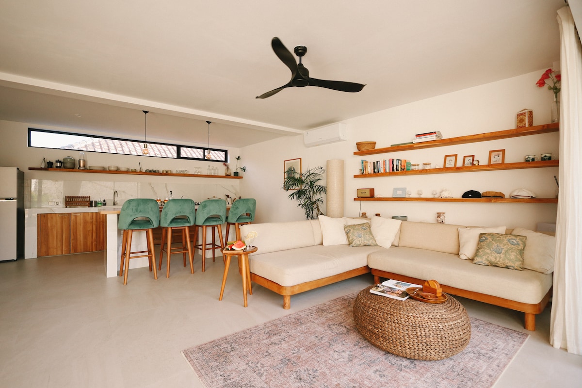 A bright and open 1-bedroom villa featuring a larger private pool and generous outdoor space, perfect for long dips, lounging, and soaking in the Uluwatu breeze. With a cozy open-concept living area, a comfy bedroom, and a peaceful tropical setting, this villa is ideal for couples and solo travelers looking for a quiet, stylish escape close to Uluwatu’s cafés and beaches. Please note we have construction works ongoing in our villa complex.