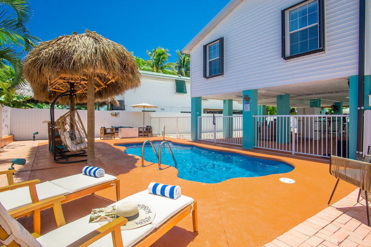 Tiki Time ~ your private paradise in beautiful Marathon, heart of the Florida Keys! This is the perfect place for a family vacation or relaxing getaway. Gorgeous 3BR home with your own private salt water pool, Tiki Hut, space to park a 30' boat/trailer, and ocean views from the balcony~Kayaks, grill, beach toys await you for your beautiful day in the Florida Keys! Less than 5 min to Sombrero Beach, Dining & Local Bars! Experience the Florida Keys like a local and book Tiki Time today!