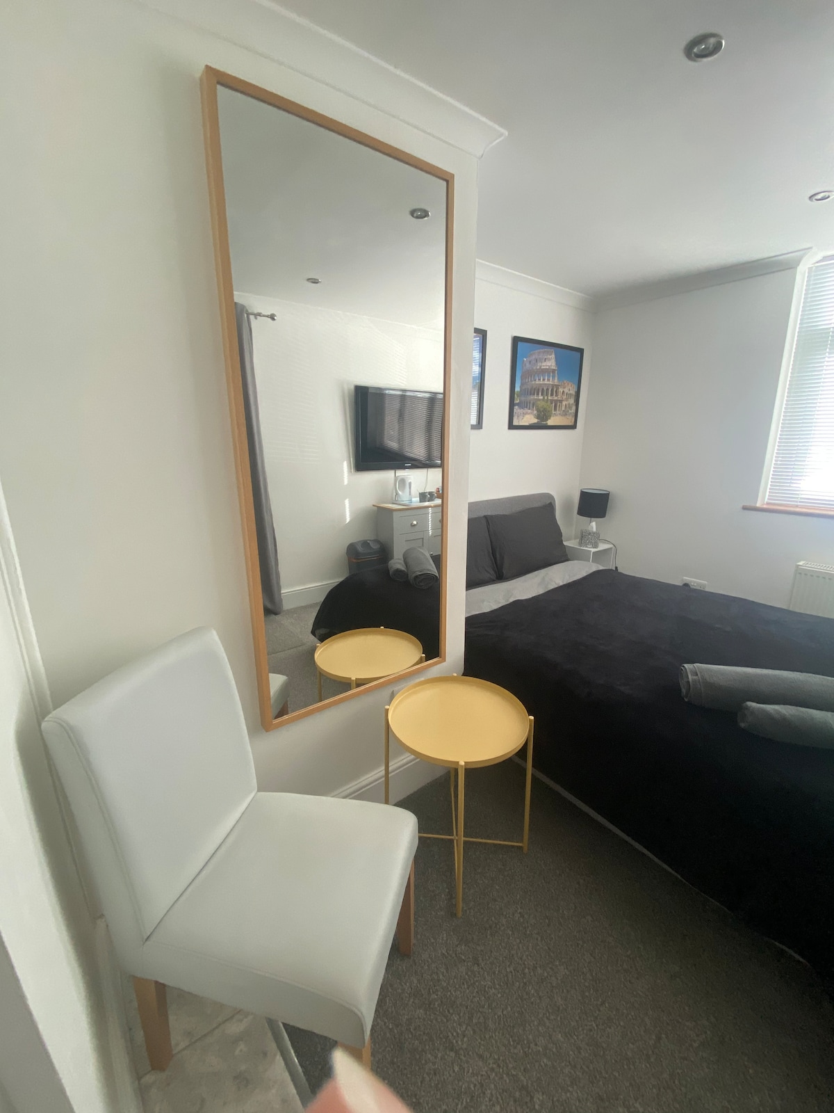 An independent well appointed attached studio annexe within an Executive Home with its own side access and entrance usually used for our guests , Ideal for 1 or 2 people. Ideally located for people travelling for business or pleasure. Outside Patio avalible area for your use. All that you need for a few days stay in Shepperton Easy access from M3, and M25. 20min walk to Shepperton Train Station which is the route into Central London which takes about 55mins Parking on road or private drive