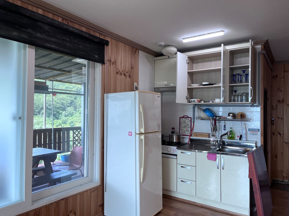* Aceasta este o cazare curată, construită în august 2024, cu o vale curată la poalele Jirisan, Sancheong-gun. Este la 3 minute cu mașina de centrul orașului Sicheon-myeon (piață, magazin alimentar, spital). * Există un interior răcoros și plăcut la un etaj înalt, un spațiu în aer liber combinat cu Mama Natură, o cameră de soare cu ușă pliantă, unde te poți bucura de natură chiar dacă plouă și este rece, un grătar confortabil și un spațiu mare pe terasă, cu o priveliște bună. * Te poți bucura de o odihnă confortabilă în vale doar pentru clienții noștri. *Living, 2 camere cu sistem de aer condiționat, cameră de zi cu aer condiționat montat pe perete * Livingul are un televizor inteligent de 65 inchi (Netflix, YouTube disponibil) și un difuzor Bluetooth. * Focul cu cărbuni este posibil numai în zona de grătar, iar interiorul proprietății este o zonă pentru nefumători. Fumatul este permis numai în afara zonelor desemnate. * Poți utiliza gratuit fiecare loc, cum ar fi livingul (bucătăria), camera de zi și terasa, în funcție de anotimp, vreme și temperatură. *Atunci când se utilizează echipamente de grătar și foc cu cărbuni_Suplimentar 30.000 KRW (nu este disponibil pe vreme ploioasă) Lemnul de foc pentru foc este de 10 kg _ 20.000 KRW vor fi adăugate