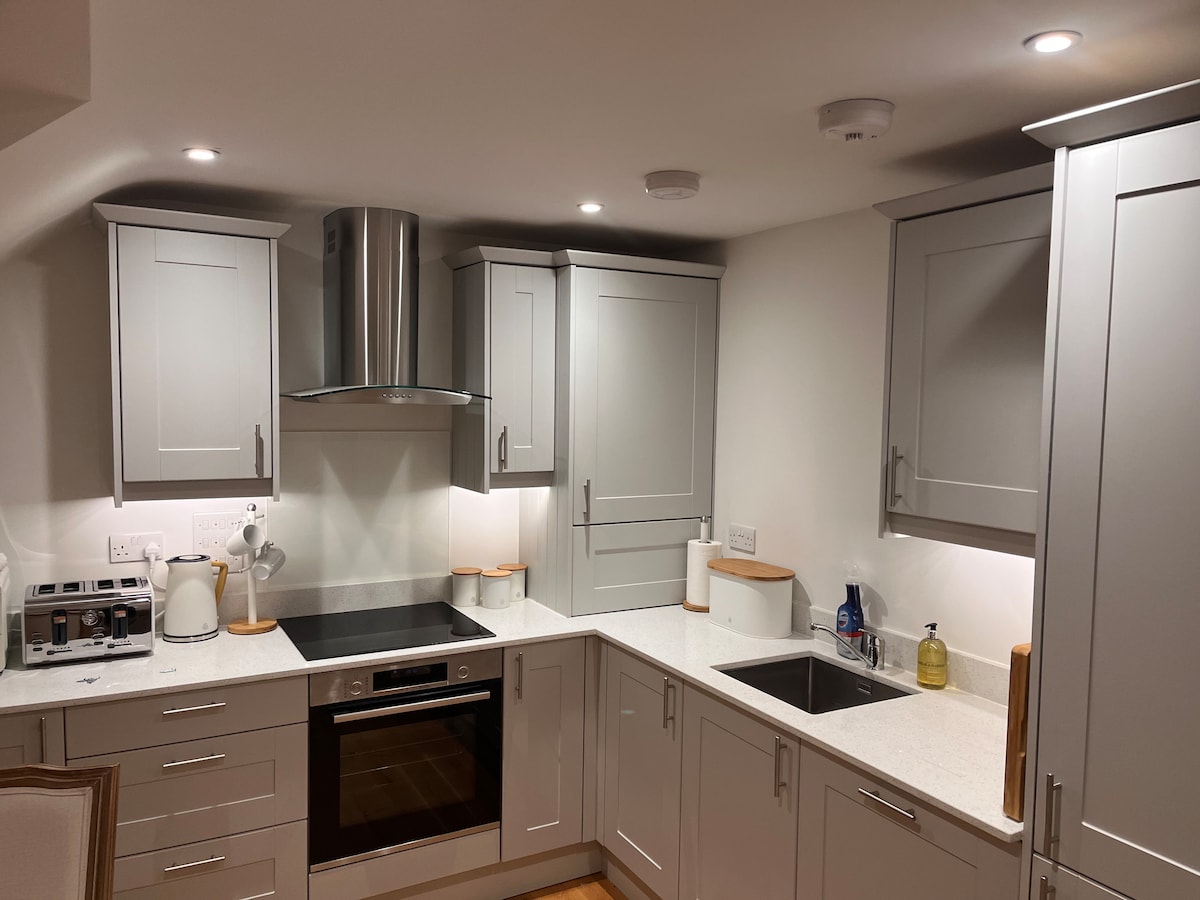Bine ai venit în anexa noastră ușoară și aerisită - complet autonomă și la doar 15 minute de mers cu mașina (sau cu trenul) de centrul orașului Oxford. Situat la capătul unei alei liniștite, la marginea orașului istoric Abingdon de pe malul râului. Împarte pe două etaje; parterul care găzduiește o bucătărie, un bar pentru micul dejun și un spațiu de locuit, iar la primul etaj un dormitor mare cu zonă de relaxare și o baie separată. Avem, de asemenea, parcare pe alee disponibilă pentru o mașină.