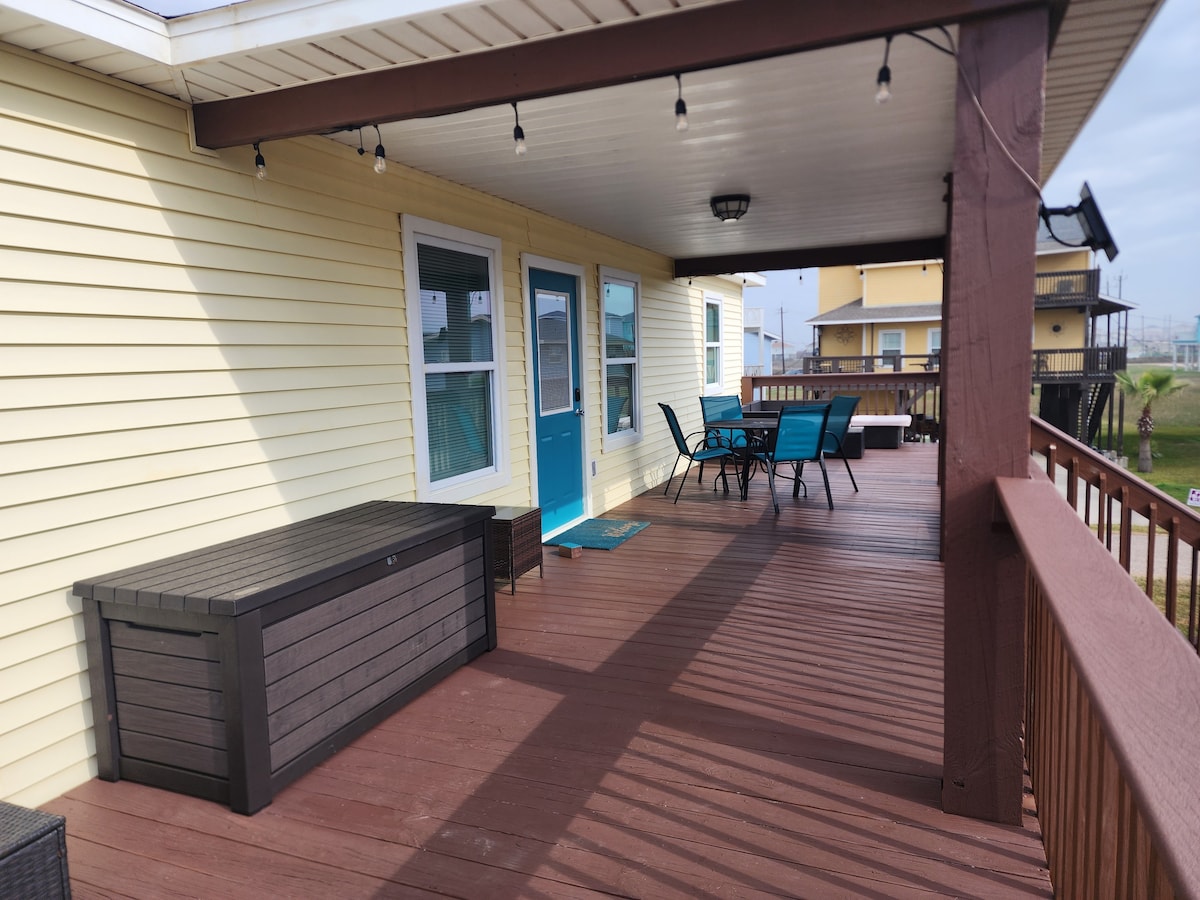 Evadează din viața ta de rutină la Seascape, o frumoasă casă pe plajă pe malul oceanului, cu o vedere spectaculoasă la Golful Mexic. Urmărește navele care navighează prin canal, iar delfinul trecând de pe punte. - Acces la plajă - Cafenea - Bucătărie complet funcțională - Internet de mare viteză - Locuri de parcare ample - Animalele de companie sunt binevenite Îmbunătățește-ți șederea la plajă cu locuințele noastre de închiriat convenabile pentru cărucioare de golf. Oferim un cărucior de golf pentru 4 pasageri de închiriat. Plățile pot fi efectuate prin alte metode decât Airbnb.