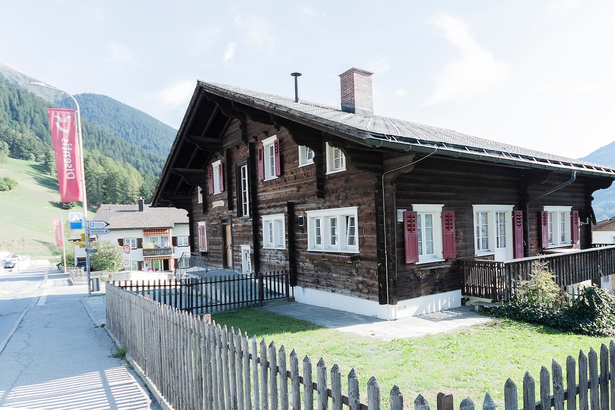 Această frumoasă casă de vacanță, cu priveliștile sale fantastice, se află într-un sat de munte din Graubünden, lângă Flims, Laax și Vals, cu numeroasele sale oportunități de drumeții, schi și petrecere a timpului liber. Această cabană mobilată cu dragoste, cu grădină și terasă, are suficient spațiu pentru o familie mare, cupluri sau prieteni de până la 6 persoane. Livingul confortabil din pin, cu soba veche din piatră de săpun și panorama muntelui, oferă relaxarea ideală în lumea liniștită a munților.