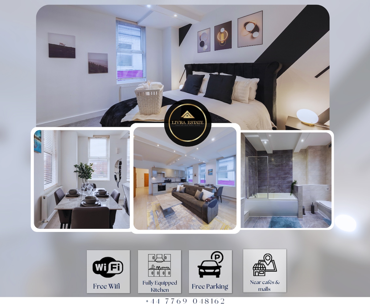 Bucură-te de un confort de neegalat în apartamentul nostru 2BR de la ultimul etaj din centrul orașului Epsom, la doar 5 minute de gară și de strada principală. Dormi liniștit într-un pat matrimonial, dublu sau de o persoană și relaxează-te într-un spațiu elegant, cu un Smart TV de 55”, un espressor și multe altele. Beneficiază de parcare securizată, un cadru liniștit și de apropierea de oraș. Estetica modernă întâlnește caracterul practic în clădirea noastră recent renovată și sigură. Ideal pentru a explora Surrey sau pentru a te bucura de liniște. Escapada ta liniștită și șic în inima tuturor!