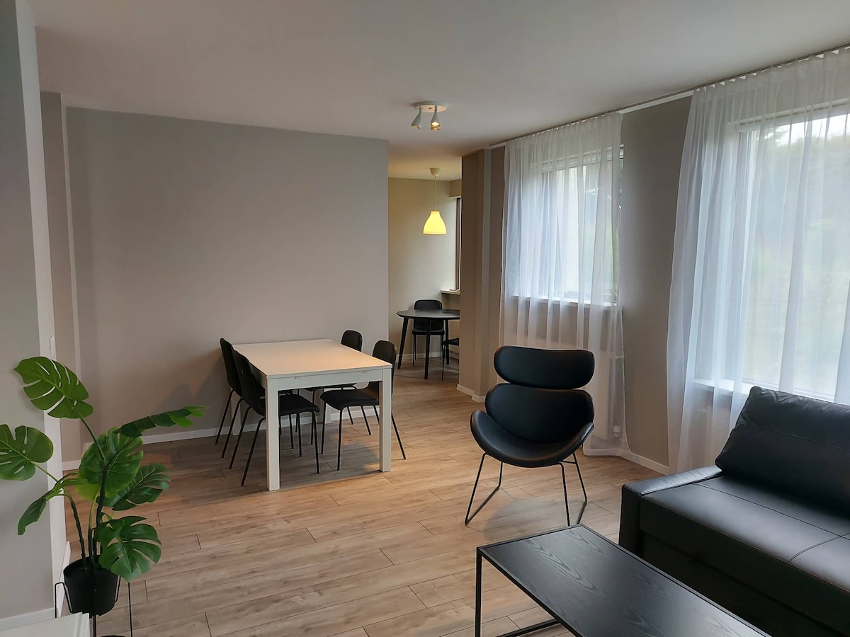 Apartament confortabil, situat în subsol. Avantajul de a locui la subsol este că ai o intrare separată pentru tine, iar toaleta este la o scurtă plimbare atunci când speli rufele. Apartamentul are o bucătărie complet utilată cu mașină de spălat vase, frigider, mașină de spălat vase, aparat de cafea etc. Wi-Fi gratuit și TV la care să te conectezi. Este o locație excelentă. La doar câteva minute de mers pe jos de centrul orașului, unde există restaurante, cafenele și magazine. Supermarketul „Bonus” este la 5 minute de apartament.