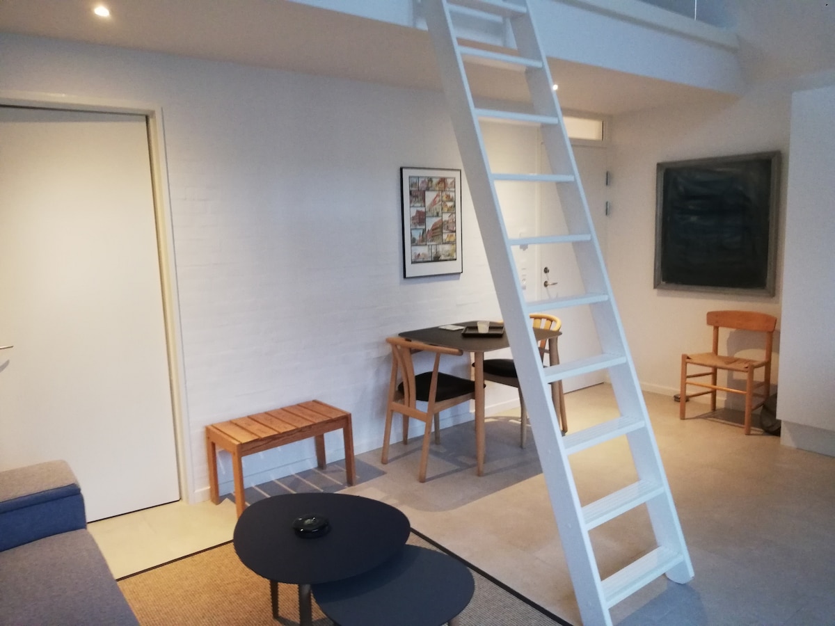 Apartament luminos la mezanin la nivelul 6 trepte deasupra nivelului străzii Situat central pe o stradă liniștită, la 25 m de strada pietonală Una dintre cele mai vechi străzi din Svendborg și vecină cu case de golf pe jumătate din lemn din anul 1742 Poate găzdui 2 adulți fără copii și animale de companie Cu 3 până la 4 minute de mers pe jos sau 150 - 300 de metri până la terminalul de autobuz, gară, port, piața orașului, precum și cumpărături și o selecție bogată de restaurante, majoritatea lucrurilor se pot face fără mașină Parcare privată gratuită este disponibilă la 100 de metri de apartament