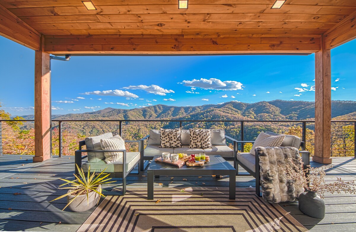 Această locuință personalizată, construită în 2020, este locul perfect pentru relaxare. Situat în afara unui drum privat (tracțiunea integrală nu este necesară), se află pe 4,25 acri, cu priveliști superbe ale Munților Great Smoky. Odată ajuns acolo, te simți cu adevărat îndepărtat de lume. Designul său modern, scandinav-japonez, este unic în zonă. Include: dormitor matrimonial, mansardă de dormit (futon matrimonial și paturi suprapuse personalizate Twin XL); bucătărie deschisă/living, curți interioare acoperite și deschise. La 10 minute de Bryson City și Cherokee.