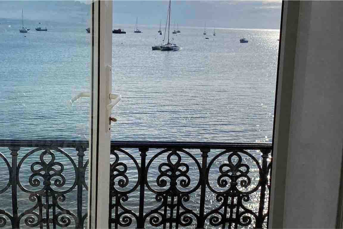 Excellent location, with sea views from the balcony, lounge and bedroom of our Edwardian flat. The two bed flat is roomy with fireplace, high ceilings, a well equipped kitchen, king size bedroom and large back bedroom with 2 singles and 2 full size pull out beds. Linen supplied except towels. TV, good wifi, books games and beach stuff available. One family car space outside plus off street nearby free. Located in the old town, 2 min. walk from all facilities No smoking in flat or balcony