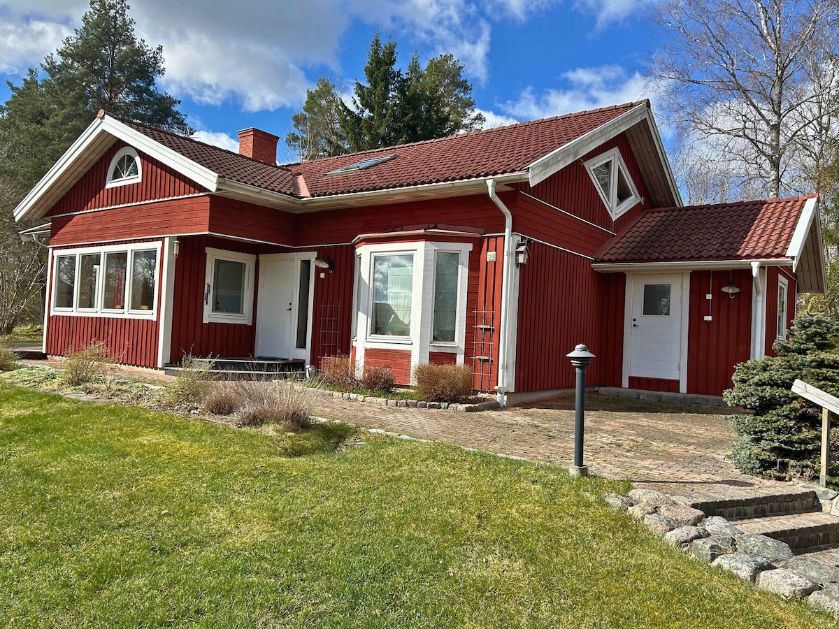 Casa mea este adorabilă, lângă un lac. Este liniștit, o mulțime de ferestre. Poți lua canoea , vâslind pe lac sau pur și simplu să stai și să te relaxezi pe terasă. Zile reci, stai înăuntru lângă șemineu, citește, mănâncă o cină plăcută într-una din camerele cu ferestre cu vedere la lac. Dormitoare mici, pereți înclinați, îți dau un sentiment de a merge înapoi 100 de ani în Suedia veche, când a fost construită casa. Nu poți înota din grădina mea, dar la 200 m de casa mea este o plajă. Casa mea este într-un sat mic.