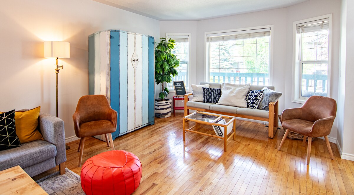 Surely one of the best places to stay in Sylvan lake. Relax and enjoy the laidback vibes.This spacious but cozy home is a perfect getaway. Only 5 minutes walk to the stunning lake and huge playground. Featuring 3 bedrooms including a king, queen and a bunk room, incorporating boho style, beach decor with area rugs, throw blankets, and soft pillows. The sofa in the lounge also pulls out into a comfortable queen. The house is fully Air Conditioned, with a games room.
