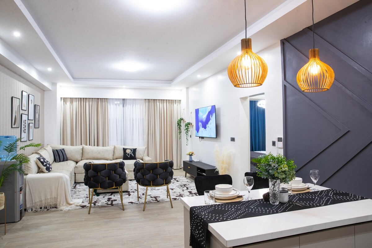 Acest 2BR Airbnb are un stil propriu, un mediu calm, curat, bine mobilat și modern, care este atrăgător, confortabil și ar găzdui o familie și/sau o persoană fizică. 1. La 10 minute distanță de/de la JKIA /SGR și aproape de taxa de intrare/ieșire de pe autostrada Nairobi. 2. Transferuri la aeroport/SGR și tururi ale orașului contra cost. 3. Apropierea de stațiuni, cluburi de noapte și mall-uri. 4. WI-FI gratuit @ 20MBPS(perfect pentru lucrul de la distanță), NETFLIX. 5. Lift securizat gratuit, parcare și personal de securitate non-stop.