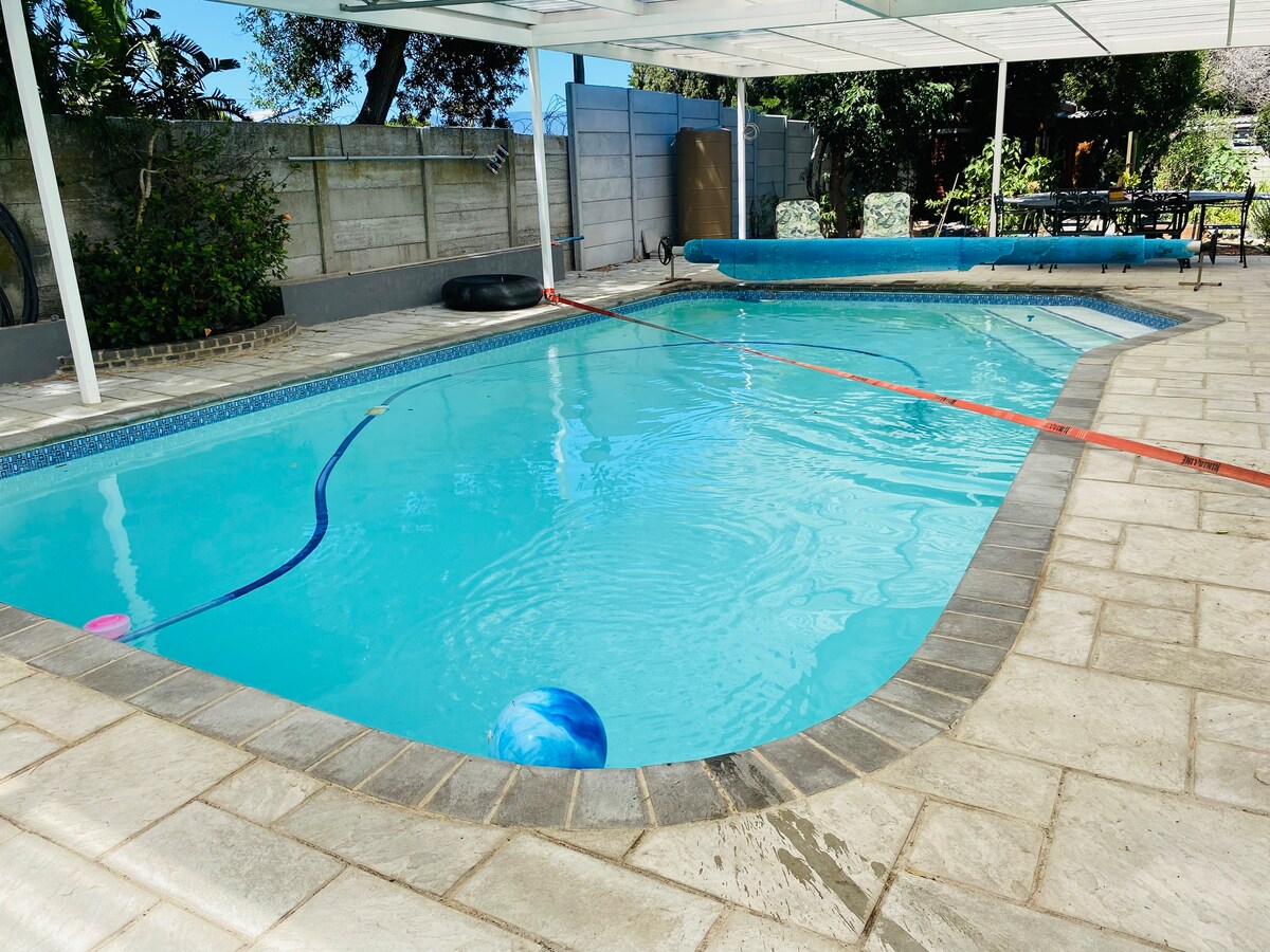 Large spacious comfortable home set in established gardens. All on one level the home is airy light with high ceilings and wonderful indoor outdoor flow from the spacious living areas out to the pool, large patio entertainment area, barbecue & fire pit. The home is set on spacious grounds with beautiful mountain views of table mountain national park. For monthly bookings use of Toytora Fortuner is an option at an additional cost.