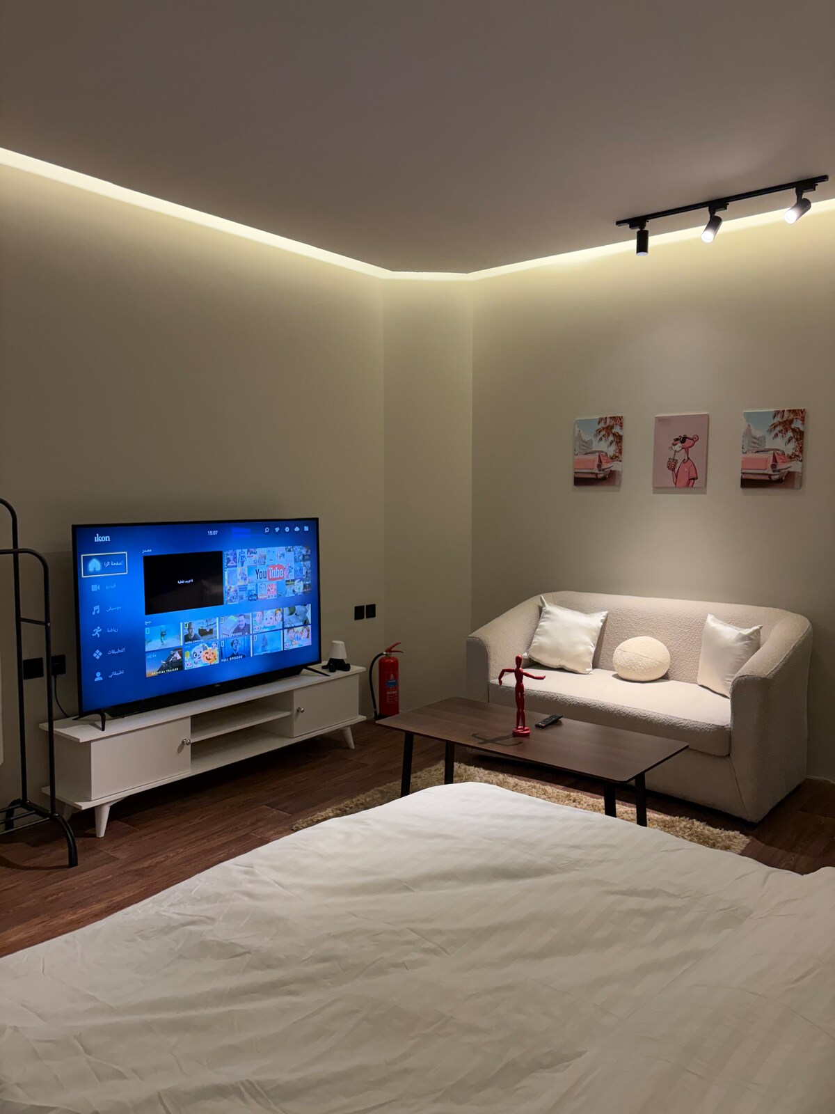A doua ta casă, Alegerea distinctivă a locuinței tale din Tabuk, cu o intrare inteligentă, un design boem liniștit și un stand în fața reședinței, pe una dintre cele mai importante străzi din Tabuk Garsoniera are facilități integrate Smart TV cu abonamente Urmărește Netflix și YouTube Premium, Un frigider , un aparat de cafea cu microunde, apă caldă și o ședere frumoasă pentru două persoane . Toate lucrurile sunt disponibile și gata să îți ofere orice cerință dorești să te bucuri de șederea ta excelentă