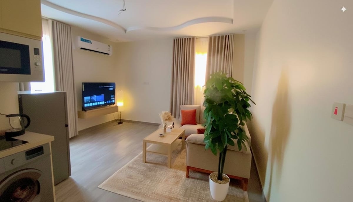 Apartament modern de familie, perfect pentru o ședere confortabilă și liniștită • Patul matrimonial este spațios și confortabil. • Salon elegant cu o sesiune practică. • Baie modernă cu finisaje luxoase. • Aer condiționat și iluminare distincte pentru un confort sporit. 🌟 O alegere ideală pentru vizitatorii care caută confort pentru muncă sau petrecere a timpului liber