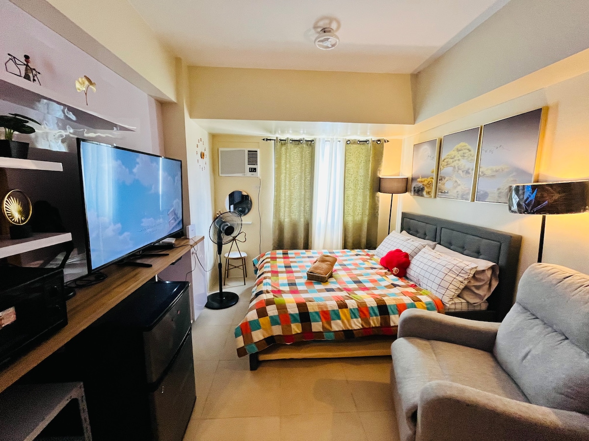 Keep it simple at this peaceful and centrally-located place. ✔️Perfect for couple or small family who prefer a minimalist ,simple overnight stay. ✔️Netflix and wifi included as complimentary to your stay. ✔️Can do light cooking Rice cooker , electric kettle and induction cooker provided. ❌no smoking/vaping ❌Pool is( not yet) available Parking is 350 overnight Mall parking is 30 pesos per entry Free parking at the lobby/vicinity limited slot so ist come ist No balcony- Street/mall view
