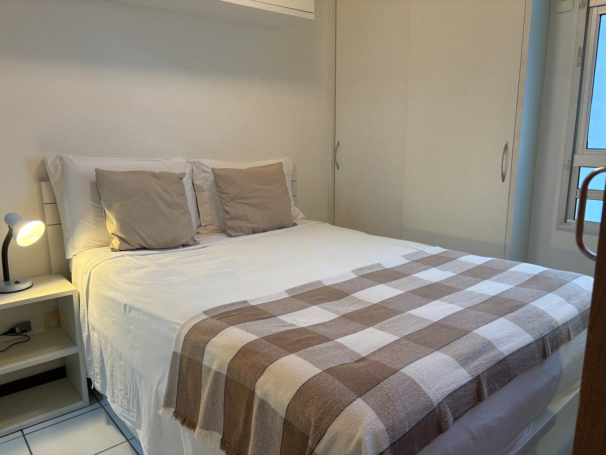 Flat na Cobertura do Ed. Fusion Work Live, cu o locație excelentă, în sectorul hotelier de nord, foarte aproape de Conjunto Nacional. Apartamentul este diferențiat, cu 1 pat dublu și 1 canapea extensibilă, lenjerie de pat și de baie, TV, Wi-Fi, aer condiționat, masă de sufragerie, masă de lucru, dulapuri, bucătărie mică, frigider, ceainic, aparat de făcut sandvișuri, friteuză cu aer, plită cu inducție, oale și tigăi, veselă și tacâmuri. Aerul condiționat este situat pe hol, în cameră adăugăm un aparat de aer condiționat.