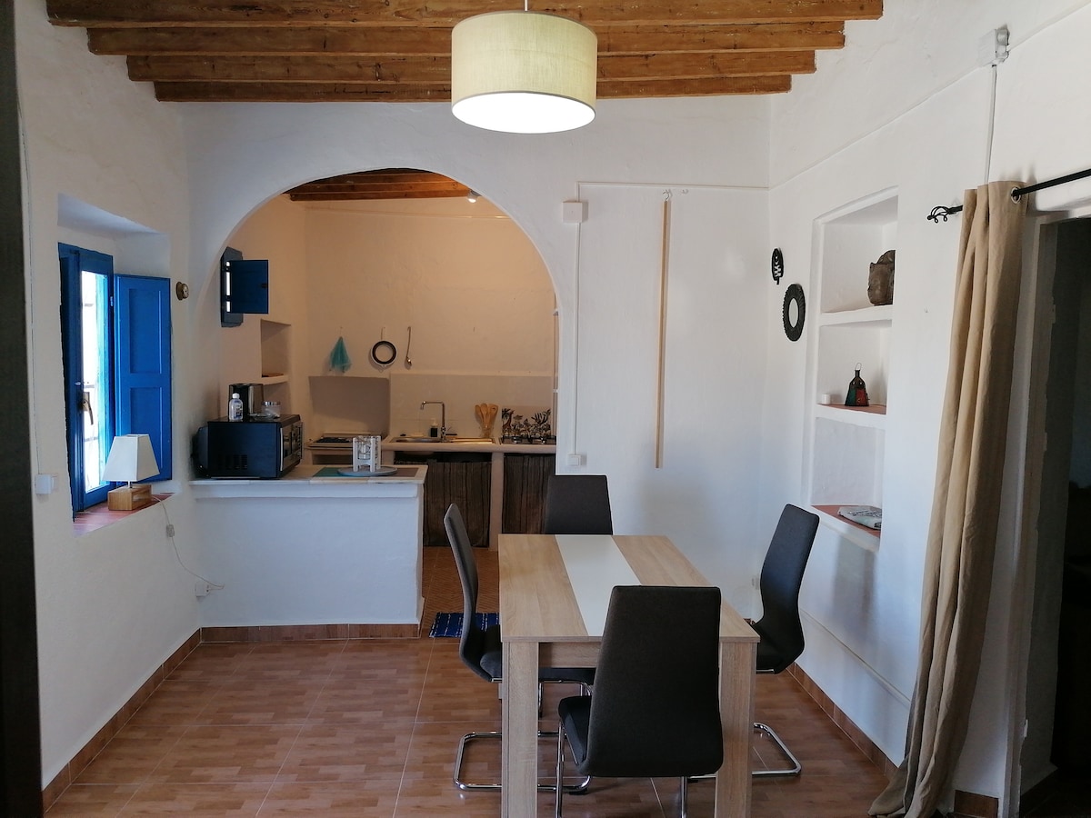 Bucură-te de natură și liniște în această fermă unică, cu priveliști splendide, ideală pentru familii, cupluri și prieteni. Chiar în lanțul muntos Alhamilla, între Capul Gata și deșertul Tabernas. Bucură-te de traseele care trec prin casă, de drumul verde, de munte și de vale. Izvor de apă potabilă proaspătă la doar 5 minute de mers pe jos.