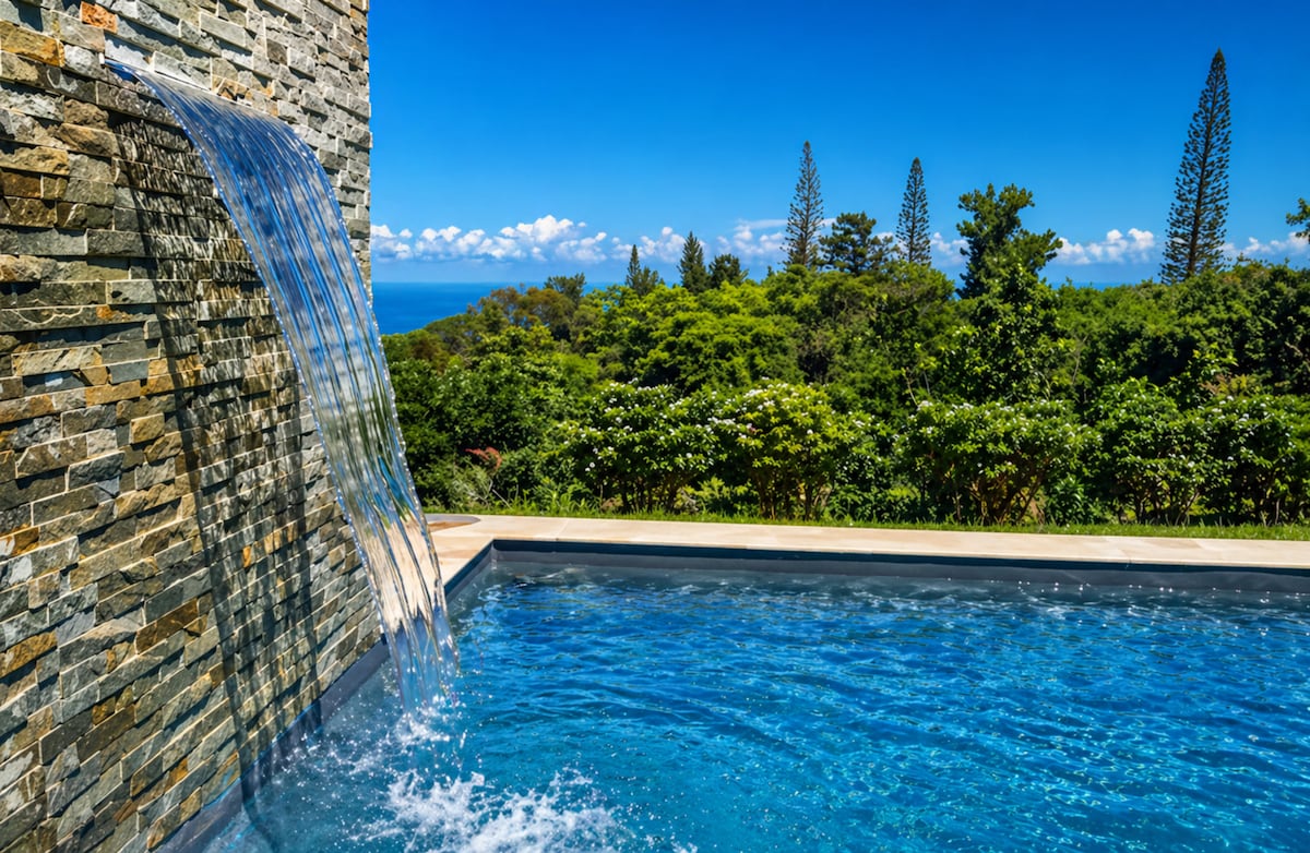 Vilă elegantă cu piscină cu pereți de sticlă în Tahiti