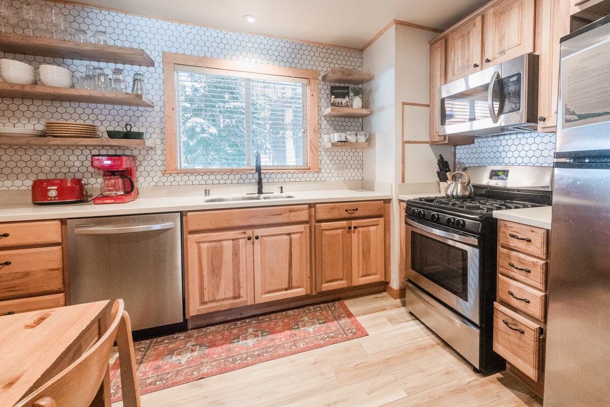 Trăiește ca un localnic, în acest spațiu recent actualizat! La două străzi de orașul Tahoe. Trasee de schi fond și snowshoe chiar pe ușa din spate, 15 minute până la stațiunea de schi Alpine Meadows. Mergi pe jos până în oraș și Après la cele mai bune restaurante din Tahoe! Această cabană are 368 de metri pătrați. Are un șemineu pe gaz pe un termostat care îl menține frumos și călduros în lunile de iarnă. Îndepărtarea zăpezii este inclusă. Există o nouă gamă de gaze/cuptor și toate ustensilele de gătit de care vei avea nevoie! De asemenea, avem un frigider nou!