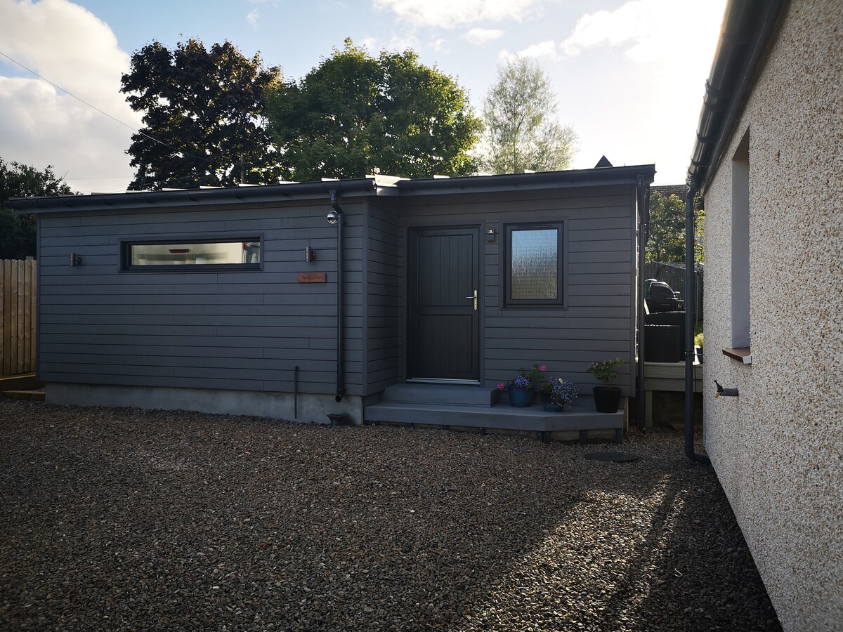 Built in 2023 and finished to a high standard, enjoy a stylish experience at this centrally-located one bedroom private guest space. Located in the Royal Burgh of Tain, off the A9 & NC500 route, this well equipped space is situated in a family garden with off road parking. The self contained building boasts, a double (UK standard) bedroom, shower room and kitchen/diner/sitting area. Large patio doors lead out to the decked area in the garden. 35 miles north of Highland capital Inverness.