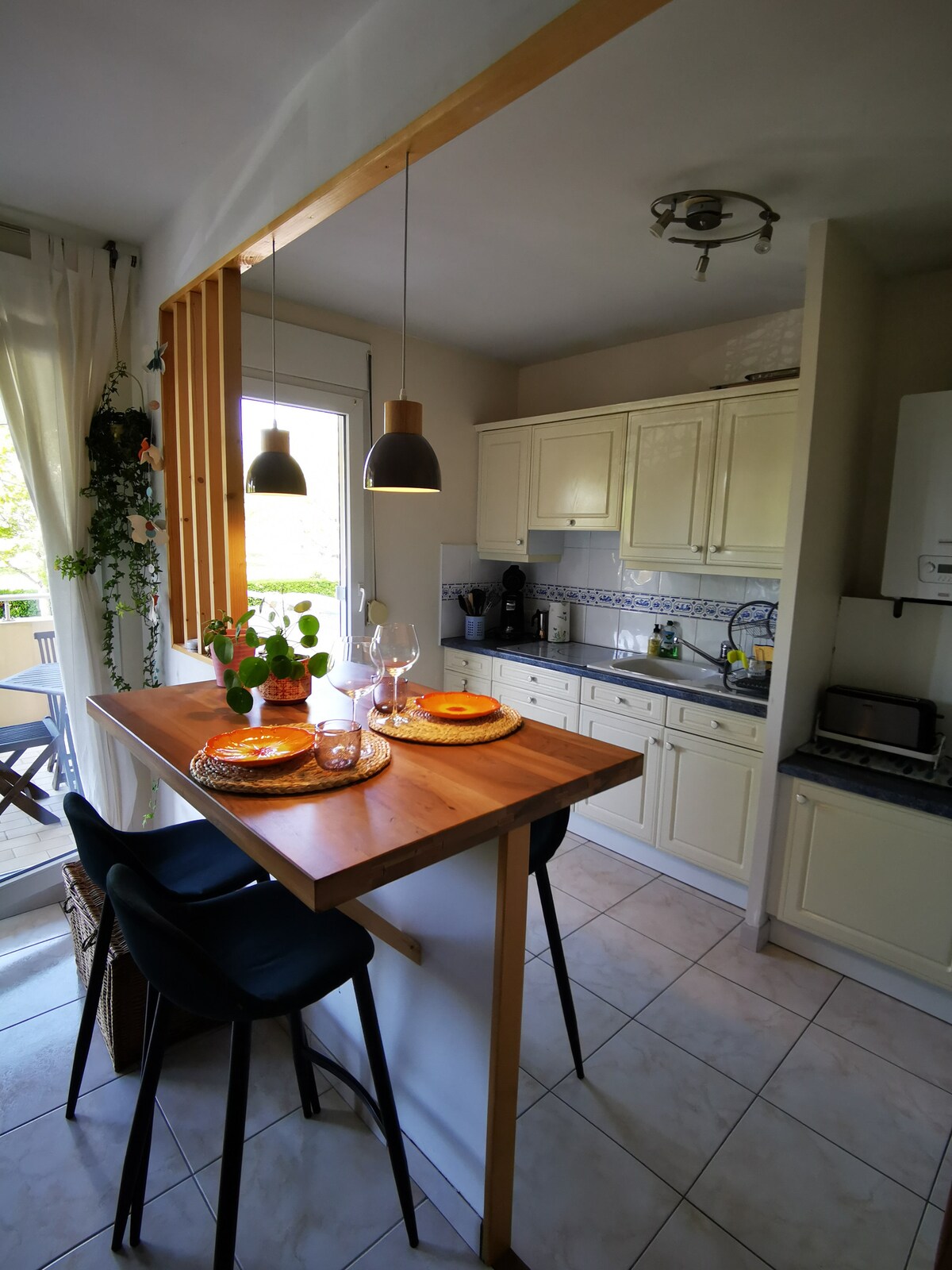Am renovat complet apartamentul nostru din centrul orașului pentru a face un spațiu cald și confortabil în care să locuim. Totul este gândit pentru confortul tău: un living primitor, o bucătărie echipată, un dormitor cu lenjerie de pat confortabilă și o baie modernă. Vei găsi tot ce ai nevoie pentru o ședere fără griji: WiFi, mașină de spălat rufe, uscător de păr... Indiferent dacă călătorești sau călătorești, vom fi încântați să te întâmpinăm!