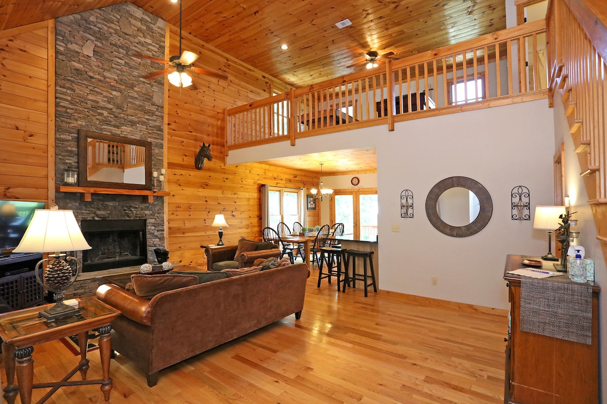 The TreeTop Retreat offers a secluded mountain view, memorable sunsets, spacious rooms to gather or hideaway, a wood burning fireplace, outdoor fire pit, hot tub and game room. This home is only MINUTES away from the area's esteemed vineyards and orchards - - Chateau Meitchry (2mi), Ott (4 mi), Buckley (4mi), Cartecay (5mi), Reece Cider House (6mi), and Apple Houses (6-7mi). Whether you stay in or go out, rest assured that you will have experienced the best of what the area has to offer.