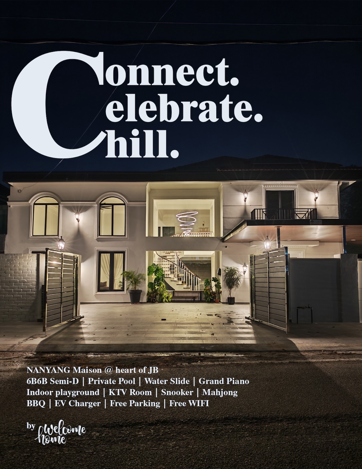 Newly renovated 2.5-storey landed home in Petrie, Johor Bahru! Perfect for family gatherings, team building, weddings, and birthdays. Enjoy a private swimming pool, BBQ pits, karaoke room, and kids’ play area. Spacious living spaces, modern kitchen, and cozy bedrooms make it ideal for large groups. Your perfect getaway for fun, relaxation, and celebration!