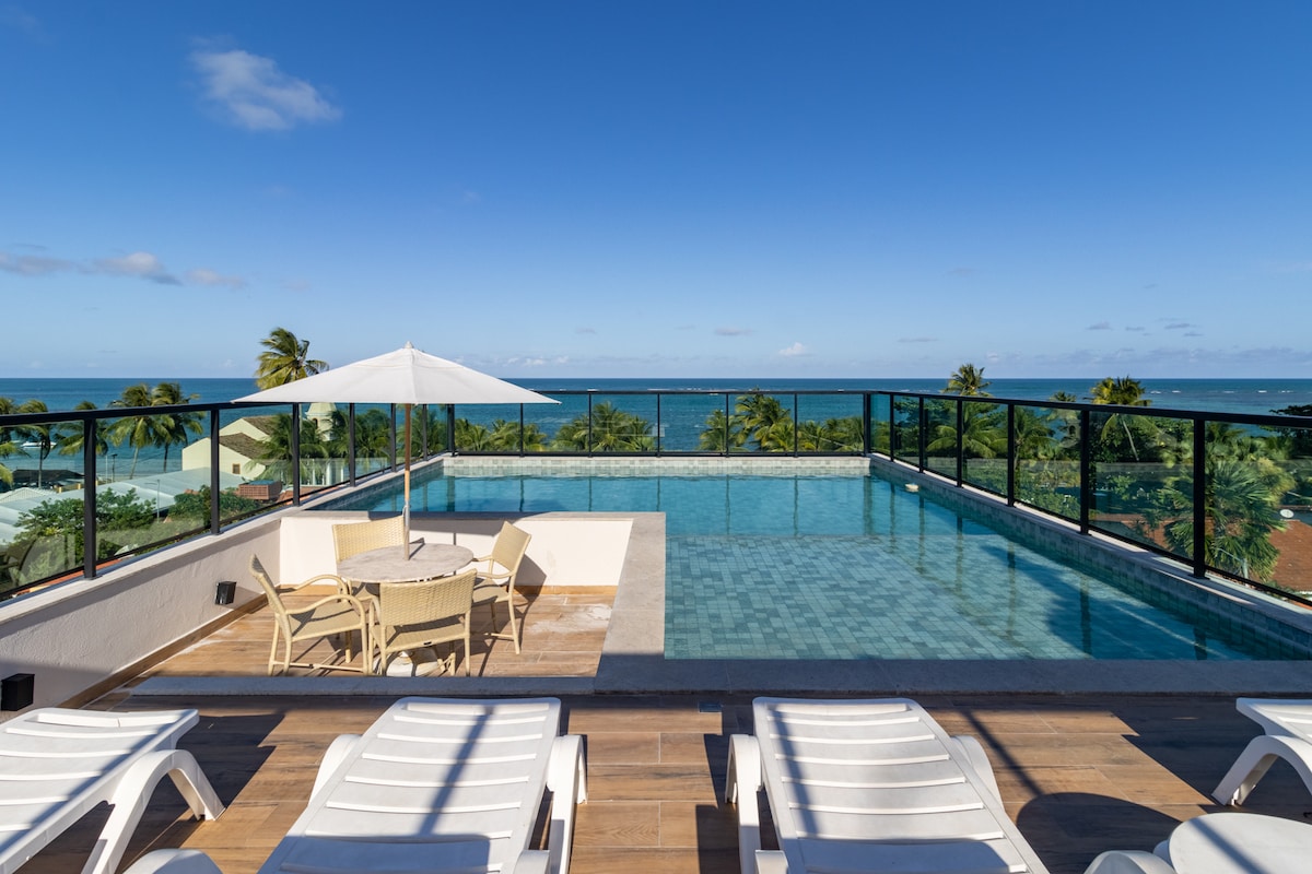 Rooftop frente mar 3 P | Piscina | 50m da Praia