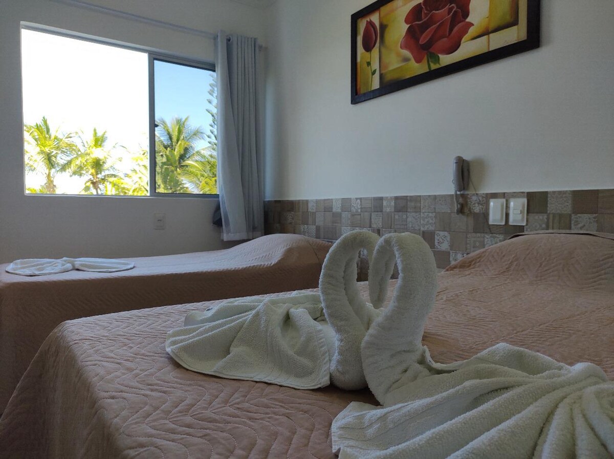 Apartamentele noastre sunt foarte confortabile și complete, excelente pentru familii, cupluri sau prieteni care doresc să se odihnească sau chiar să se bucure de întreaga structură pe care o oferă apartamentul în complex rezidențial, în plus față de plajă, unde există mai multe opțiuni pentru tururi. Apartamentul este pe malul apei și este situat lângă faimoasa Igrejinha de Carneiros.