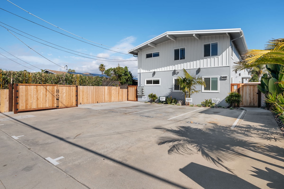 Beach unit in the Village of Carlsbad. Approx 5 houses to beach access! Dedicated parking spot. Newly built Mini Suite was built w/high end amenities. Approx. 400 sq. ft. Features: remote, adjustable Queen bed, Cable TV. Walk-in shower, full kitchen w/your own stack washer/dryer inside. Outdoor Deck seating. Propane BBQ. On-Site Parking. All the amenities of home. Exterior beach shower. No pets, No Drugs, No Smoking, No Parties