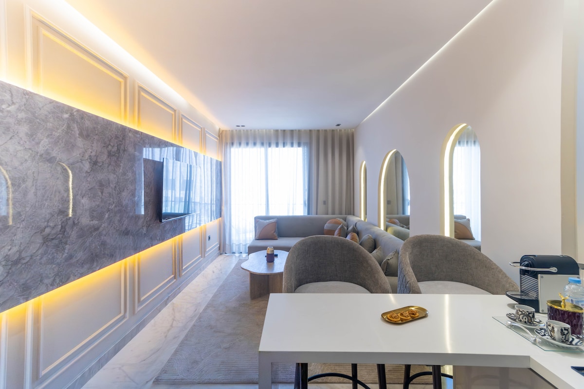 Unwind in our luxurious studio, where comfort meets convenience in one of Casablanca’s most desirable neighborhoods. Featuring elegant design, a private gym, and a spacious balcony—perfect for your morning coffee or enjoying breathtaking evening views. With top restaurants, shops, and must-see attractions just a short walk away, you'll have everything at your doorstep. Whether you're visiting for business or leisure, it's the ideal escape to relax and recharge.