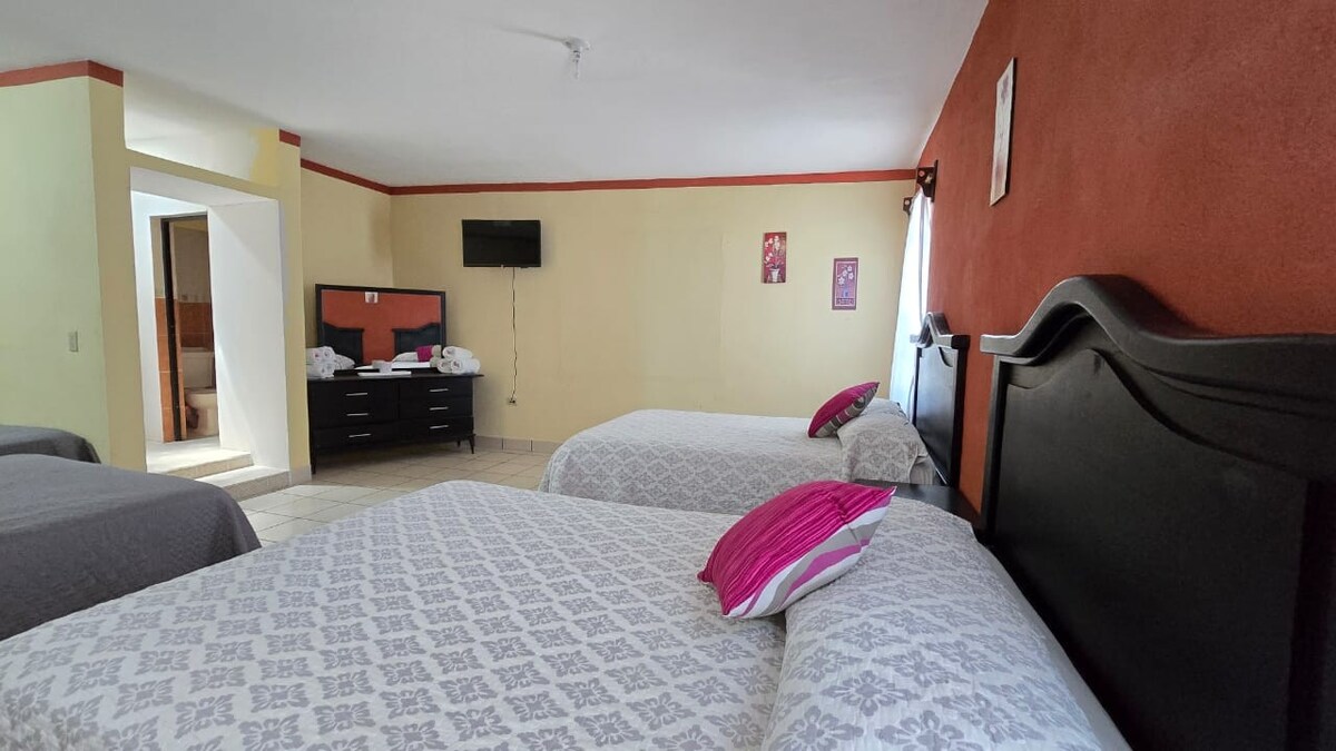 Habitaciones 308 y 309 – Opción Compartida Ideales para familias o grupos de amigos, las habitaciones 308 y 309 ofrecen una excelente opción de hospedaje cómoda y accesible. Cada habitación se renta por separado, pero ambas comparten un baño completo, lo que las convierte en una alternativa práctica para quienes viajan juntos y desean mantenerse cerca. Ubicadas en un ambiente tranquilo dentro del hotel, combinan privacidad, funcionalidad y una ubicación céntrica en Linares.