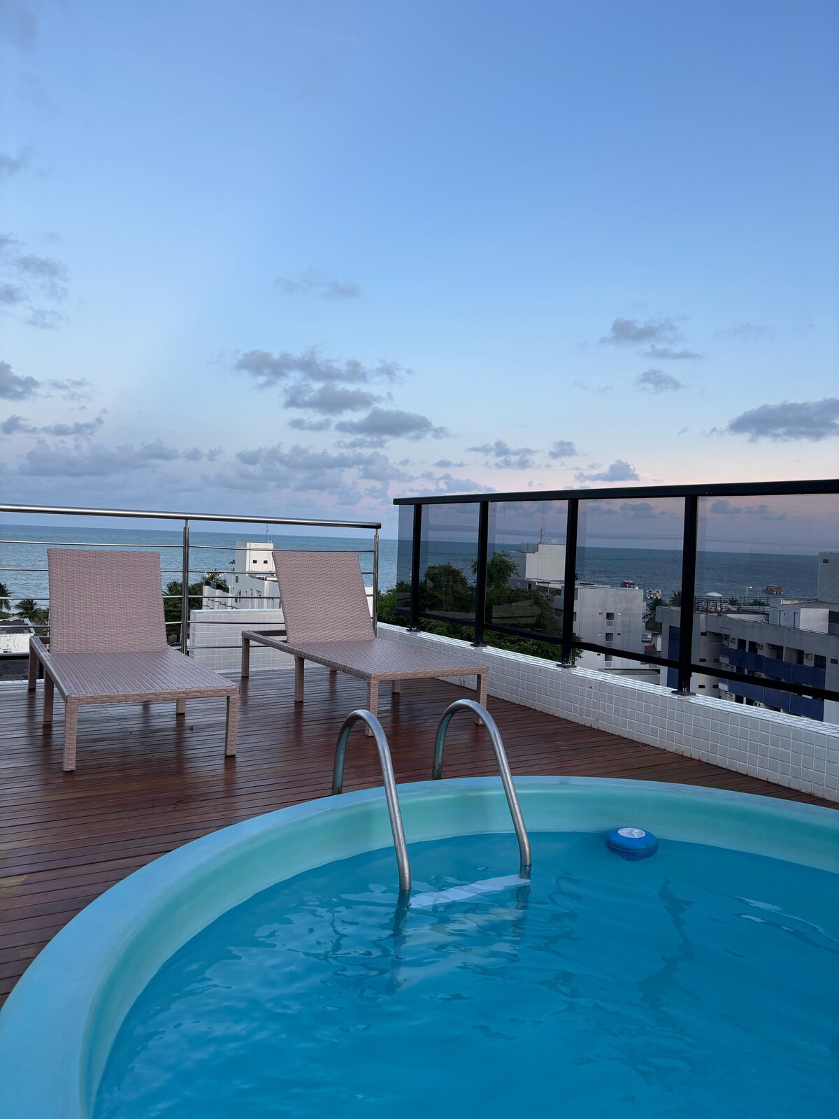 Apto 24m² novo à beira-mar da praia do Cabo Branco com vista lateral para o mar! Você terá a disposição cozinha equipada, enxoval completo de cama e banho, Wi-fi privativo, SmarTV, TV a Cabo, vaga de garagem privativa interna e diversas outras comodidades essenciais ao seu bem estar!