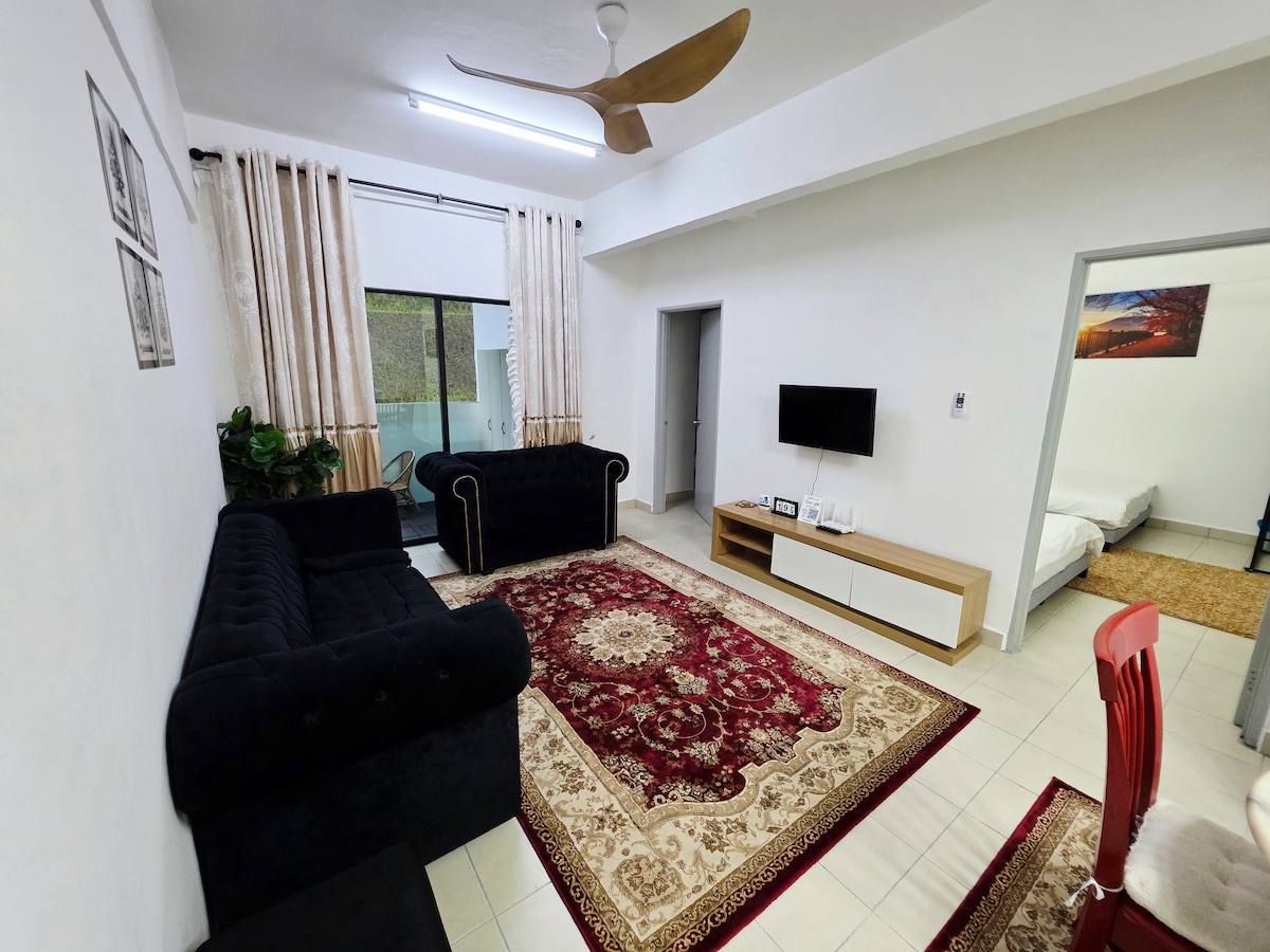 Întregul apartament cu 2 dormitoare, 2 băi cu living, zone de luat masa și un balcon. Pentru familii de până la 7 persoane (maximum). Poziție bună, orașele Tanah Rata și Brinchang se află la mai puțin de 10 minute cu mașina. NU există TRANSPORT ÎN COMUN DISPONIBIL și nu este potrivit dacă nu conduci. Pasar Malam, minimarts, magazine, restaurant în jos pe scări. WIFI gratuit de 100 Mbps și TV Android cu YouTube. Gătitul nu este permis (inclusiv vaporul cu aburi). Cuptor cu microunde disponibil pentru reîncălzirea alimentelor pre-gătite și a tacâmurilor pentru a lua masa în interior.