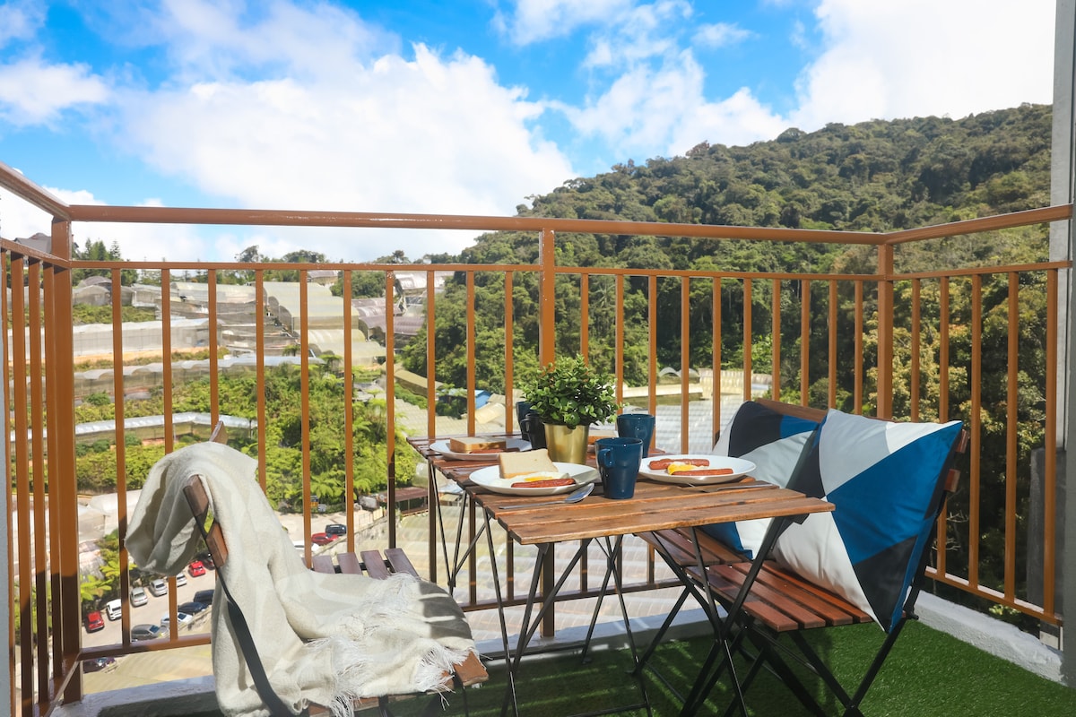 Cu vedere la verdeață la ultimul etaj din orașul Brinchang, Emeralds Avenue. 4 paturi queen + 2 paturi de o persoană pentru 10 persoane și 3 băi. 3 parcări auto lângă lift. Prietenos pentru seniori. Bucătărie complet echipată cu purificator de apă Coway. În spatele mall-ului Centrum. Distanță de mers pe jos până la peste 100 de restaurante, Burger King, KFC, supermarket Billion, Wet&Cactus Valley. Unify gratuit și Netflix. Televizor inteligent de 55”. Oferim mese de mahjong și carrom Pentru 20 de persoane poți rezerva unitatea de conectare. EA922-Link https://www.airbnb.com/h/josplaceemera