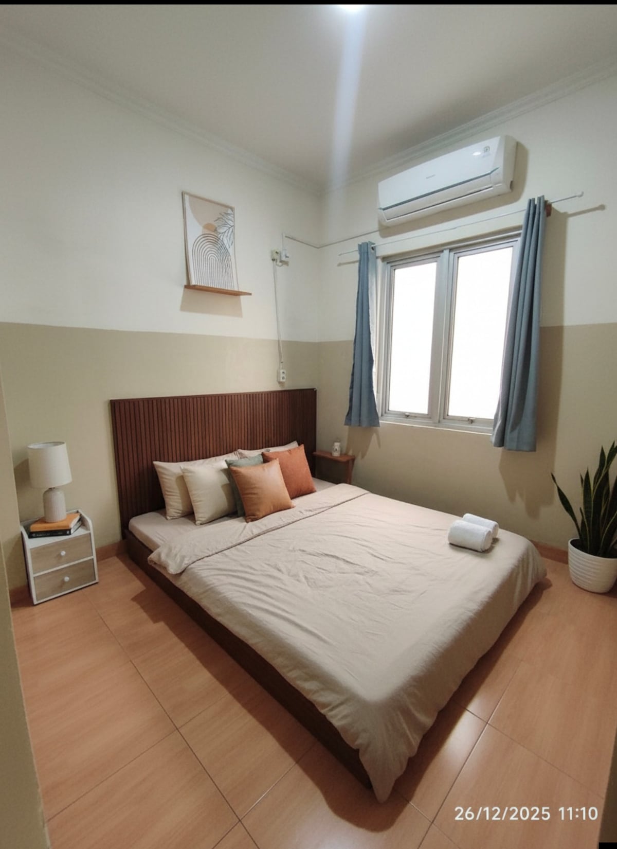 Cozy minimalist place with 2 bedroom on the 3rd floor, just 9.3 km from the airport. Enjoy air-conditioning, a comfy bed, and a private bathroom with a water heater. kitchen available for cooking. Perfect for short/ long stays, transit guests, or business trips. Clean, peaceful, and designed for your comfort