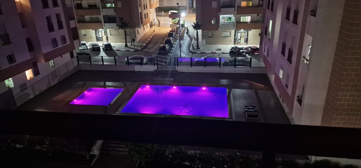Apartamentul constă din 2 dormitoare aproape de toate obiectivele turistice și dotările. - 3 minute de mers pe jos până la plajă. - 1 minut de mers pe jos de cornișă. -10 minute de mers pe jos până la stația TGV și City Mall Tanger. -THEbuilding este securizat non-stop(cameră la intrare și concierge) . - Pe proprietate este disponibilă o parcare gratuită. - Piscina din afara clădirii este la 5 minute de mers pe jos. - Piscina este deschisă în iulie și august. - Piscină accesibilă tuturor. Înot gratuit pentru 4 persoane, apoi 40 DH/pers suplimentar.