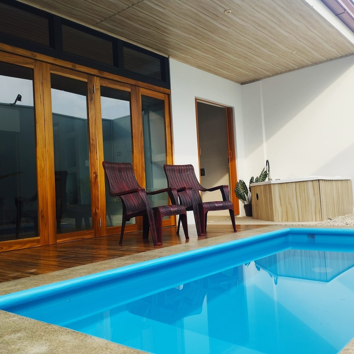 „Oasis House: Your Peace Refuge in La Fortuna! Situat într-un cadru liniștit, cu priveliști uimitoare ale vulcanului Arenal și ale peisajului rural. La doar 8 minute cu mașina de centrul orașului La Fortuna, îți oferă acces ușor la principalele atracții turistice, cum ar fi Parcul Național Vulcanul Arenal. Bucură-te de liniște, departe de zgomotul orașului și relaxează-te în jacuzzi-ul tău privat, înconjurat de natură. Locul perfect pentru a te deconecta și a te bucura de intimitate totală.”