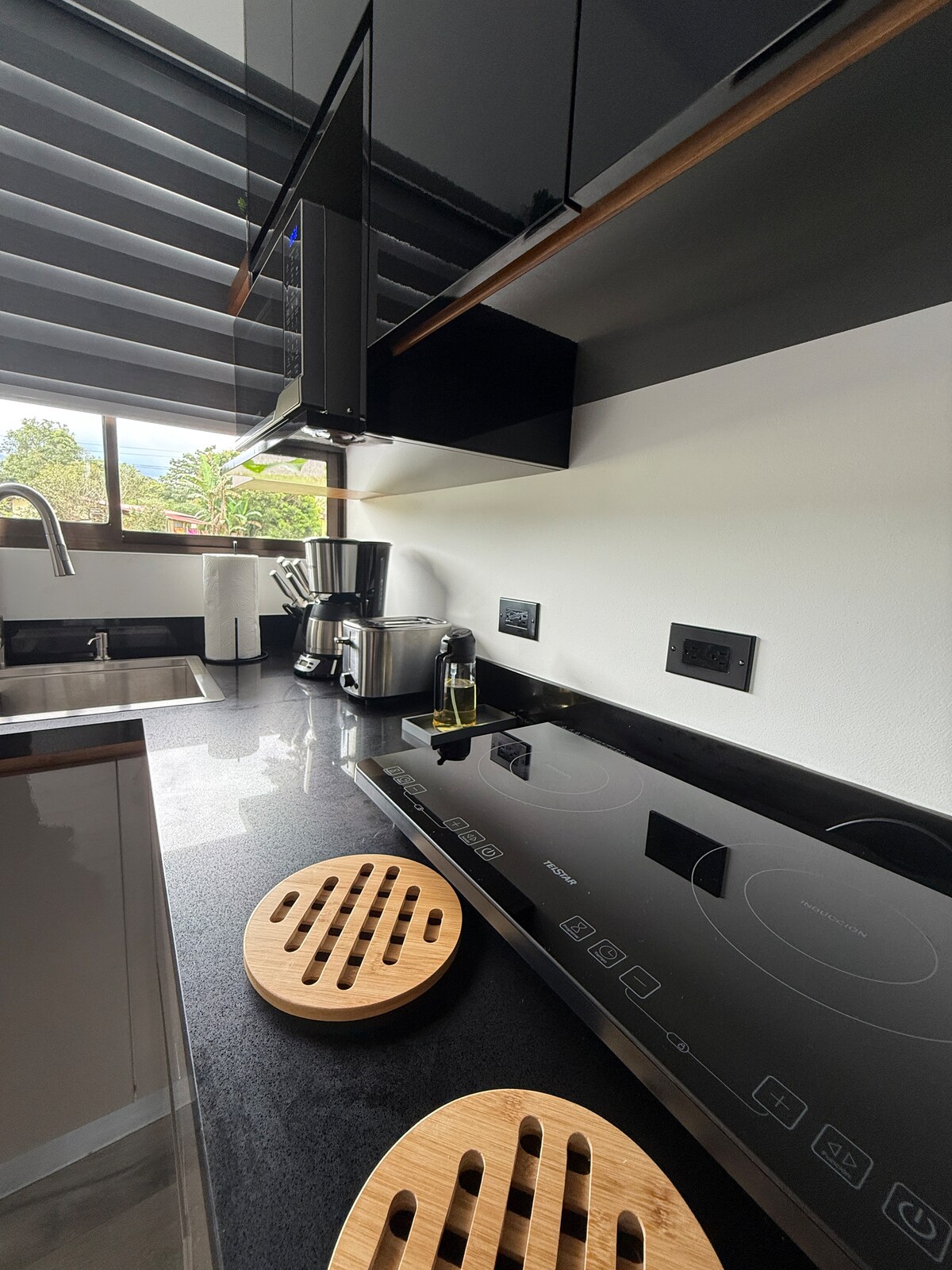 Trăiește o escapadă de neuitat în cabana noastră alb-negru, un refugiu modern și confortabil, ideal pentru cupluri sau prieteni. Complet echipat, cu o capacitate de până la 4 persoane și priveliști de la țară care te invită să te relaxezi. La doar 8 minute de centrul orașului La Fortuna și aproape de vulcanul Arenal, izvoare termale, parcuri turistice și restaurante excelente. Loc perfect pentru a te odihni și a explora cele mai bune locuri din zonă.