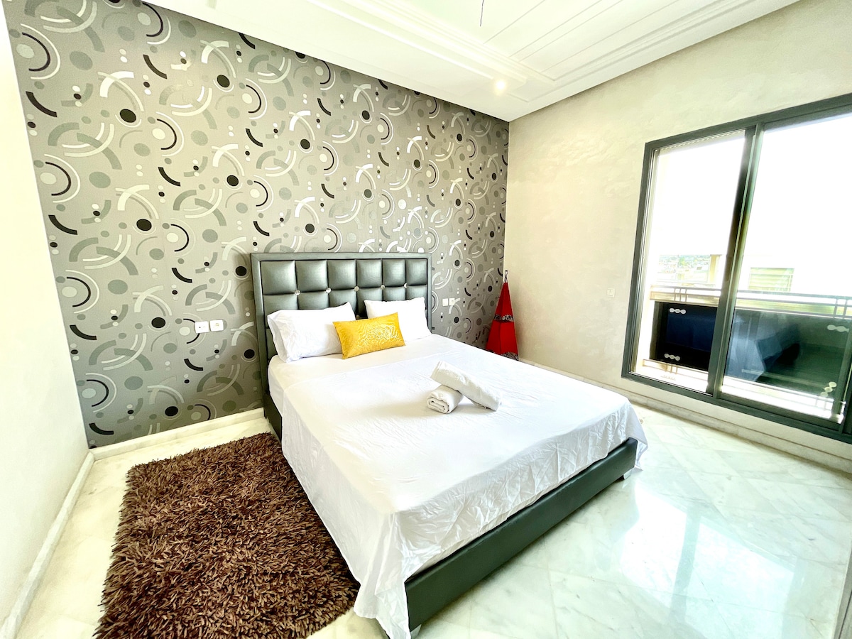 Avec une vue panoramique de Fès, le Premium & Chic est un superbe appartement situé au centre-ville et à deux minutes de marche de la Gare ferroviaire, du centre d’achats Borj Fès, des supermarchés d’alimentation ainsi que des restaurants et cafés de la célèbre avenue Hassan2. L’appartement, doté d’un confort haut de gamme, est situé dans un immeuble neuf et moderne avec tout le confort. Profitez d’un grand balcon avec vue exceptionnelle sur Fès et ses montagnes. 15min du complexe sportif.
