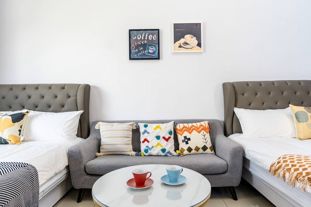 Relaxare Este o sală de creație literară care combină crearea de literatură, creând un mediu de viață unic și transportul convenabil al unui centru cu două căi, care demonstrează în continuare confortul șederii tale. ——————————————————————————— Atracții în apropiere Taoyuan High Speed Railway Station (10-13 minute de mers pe jos), Huatai Famous City (10 minute pe jos), Xin Guang Cinema City (3 minute cu mașina/15 minute de mers pe jos), Yokoyama Calligraphy Park (8 minute pe jos), IKEA Taoyuan Store (4 minute cu mașina/10 minute de mers pe jos), Parcul Qingtang și Muzeul de Artă pentru Copii (8 minute cu mașina), Aeroportul Taoyuan (15 minute de mers cu mașina/6 opriri), transportul convenabil este cea mai bună alegere pentru a vizita diferite atracții. ——————————————————————————— Reședința este planificată ca un apartament În interior, există un pat dublu, bucătărie, baie privată, balcon privat. Limitează gradul de ocupare la 2 persoane. ——————————————————————————— Verifică dacă ai probleme ⚠️Notă: persoanele care stau după ora 23:00 nu sunt acceptabile. Fiecare grup de oaspeți va fi întâmpinat de noi, așa că te vom întreba ora sosirii atunci când faci rezervarea, nu putem coopera. Te rugăm să nu comanzi. ⚠️Dacă o persoană suplimentară stă în ultimul moment, va fi necesar un tarif dinamic (plus o persoană + 600 TWD $, numai numerar sau remitere) Întreaga locuință este de uz privat, nimeni altcineva nu o va împărți. Taxă de utilizator.Nu pot accepta nu rezerva.