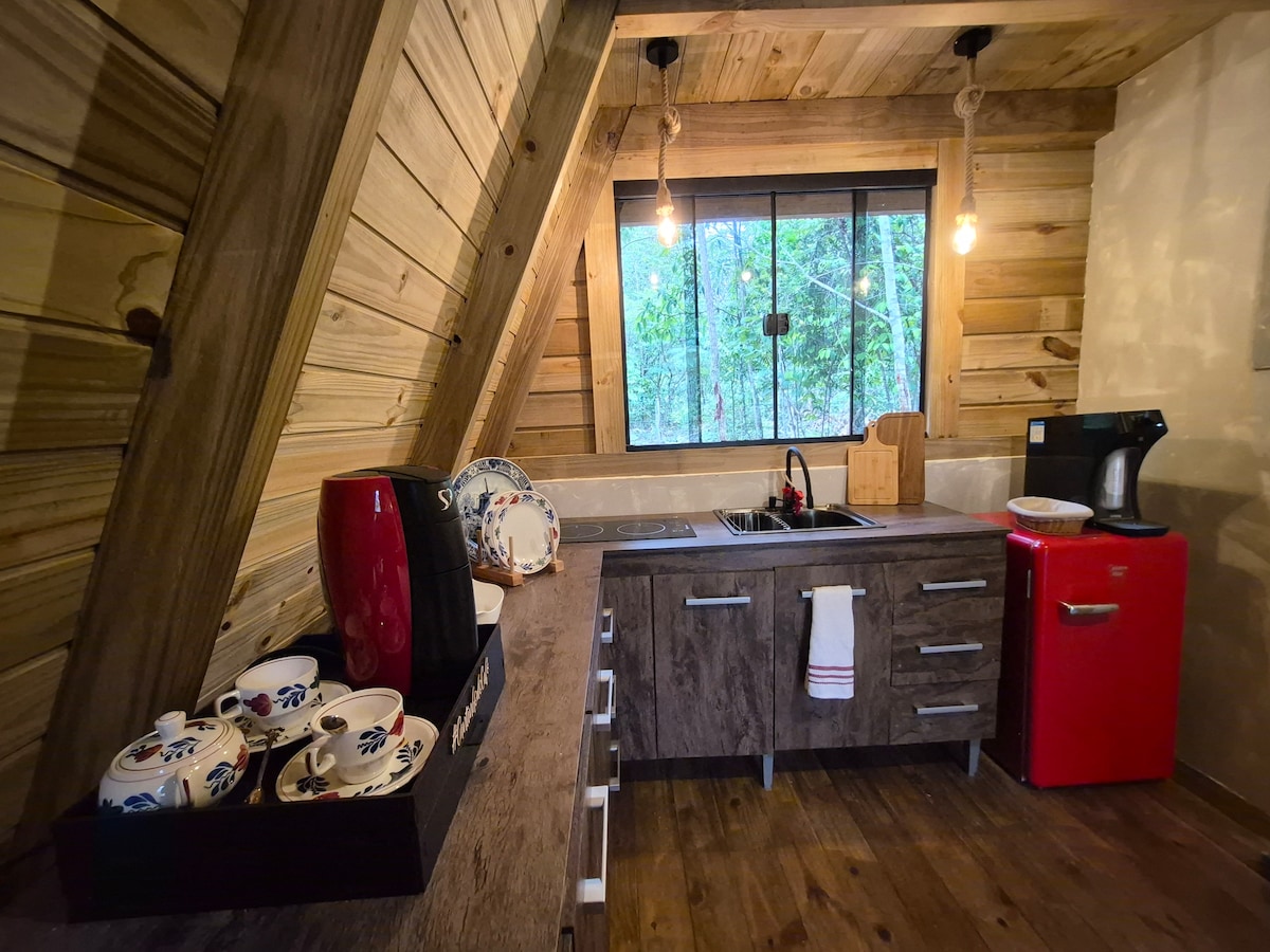 Cabana Mirante do Sol – Transmite momente de neuitat lângă cei pe care îi iubești , înconjurați de natură și cu o priveliște uluitoare, cu un apus de soare radiant. Cabana noastră oferă echilibrul perfect între confort și romantism. Bucură-te de o bucătărie completă pentru pregătirea meselor pentru două persoane, un living complet echipat, o cadă cu hidromasaj perfectă și un dormitor și un living cu aer condiționat și o priveliște unică de admirat. Aici, fiecare detaliu a fost conceput astfel încât să poți trăi dragostea cu ușurință și să te conectezi cu natura.